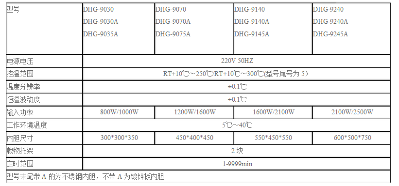 ■DHG-924**電熱鼓風(fēng)干燥箱技術(shù)參數(shù)