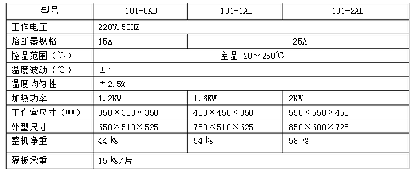 7.工作室上側設置排風閥,工作過程中看隨時將被加熱器釋放的潮氣排出箱外。 三、產品型號說明 101----鼓風干燥箱